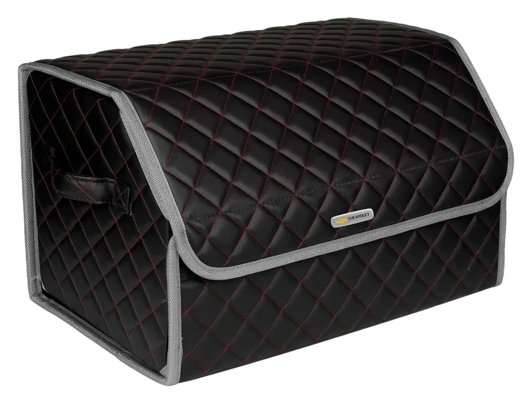 Special Offer Сумка-органайзер в багажник автомобиля из экокожи черная с красной нитью ViceCar с логотипом CHEVROLET (светло-серый кант) Discount [NEW!!] Today!