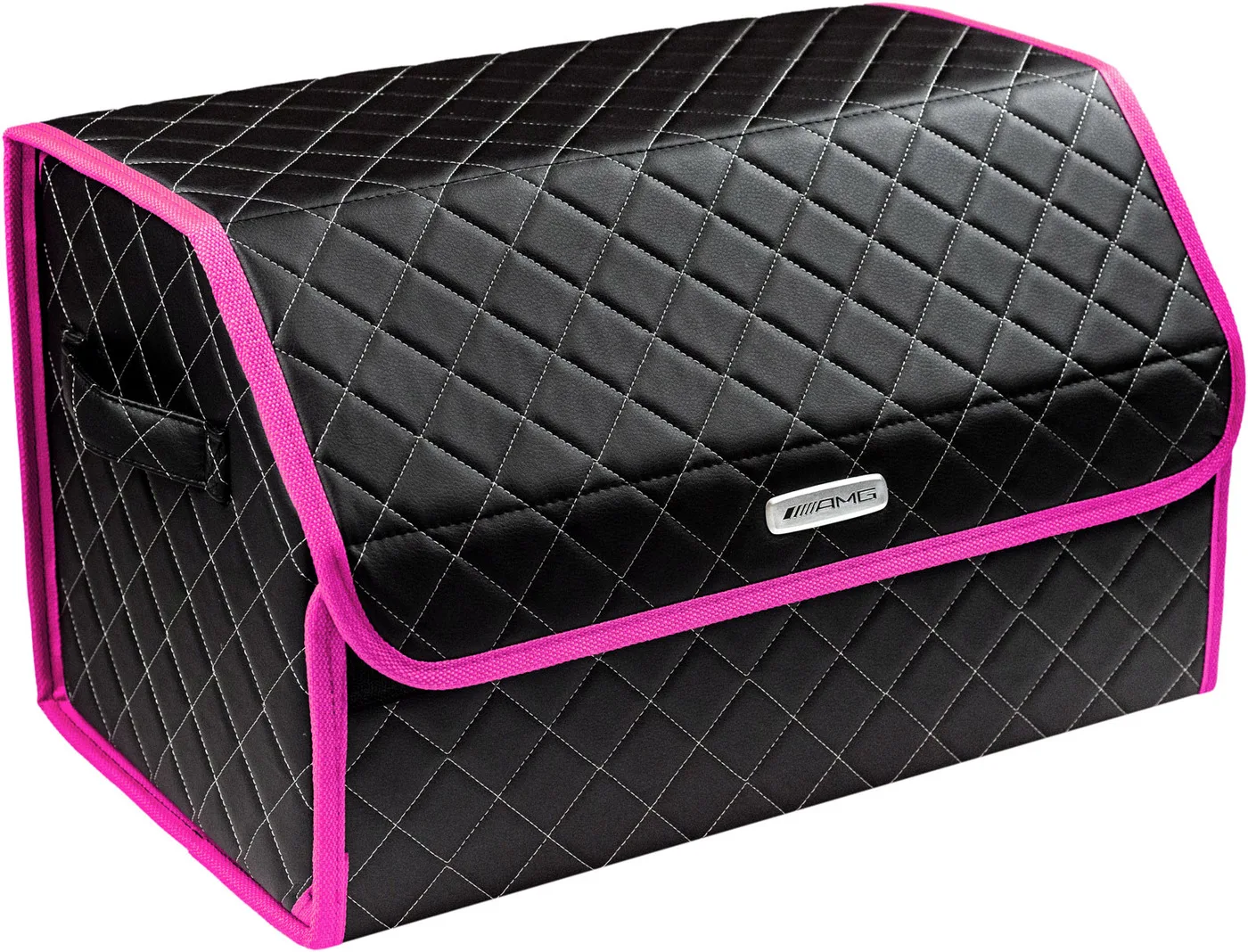 Special Offer Сумка-органайзер в багажник автомобиля из экокожи черная с серой нитью ViceCar (розовый кант) с логотипом AMG Discount [NEW!!] Today!