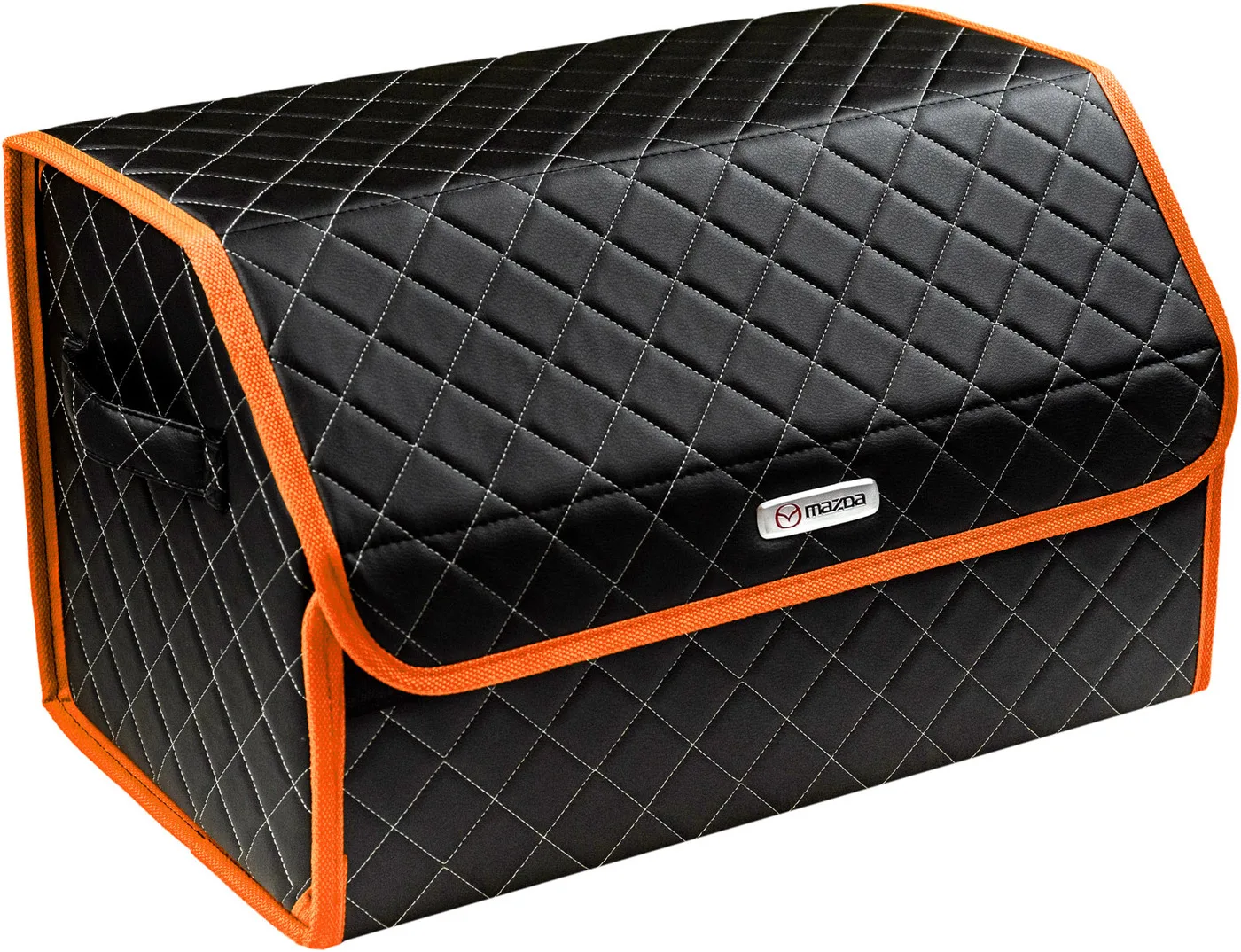 Special Offer Сумка-органайзер в багажник автомобиля из экокожи черная с серой нитью ViceCar (оранжевый кант) с логотипом MAZDA Discount [NEW!!] Today!