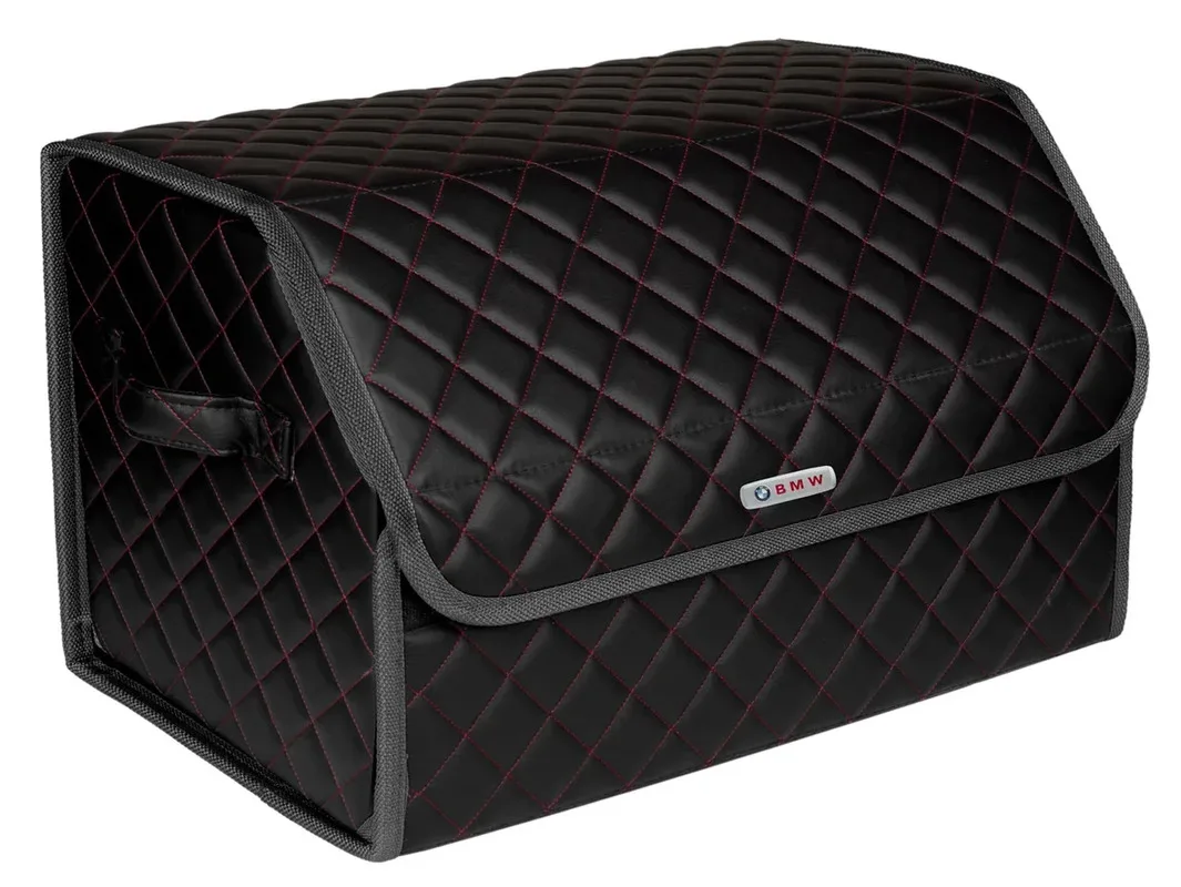 Special Offer Сумка-органайзер в багажник автомобиля из экокожи черная с красной нитью ViceCar с логотипом BMW (темно-серый кант) Discount [NEW!!] Today!