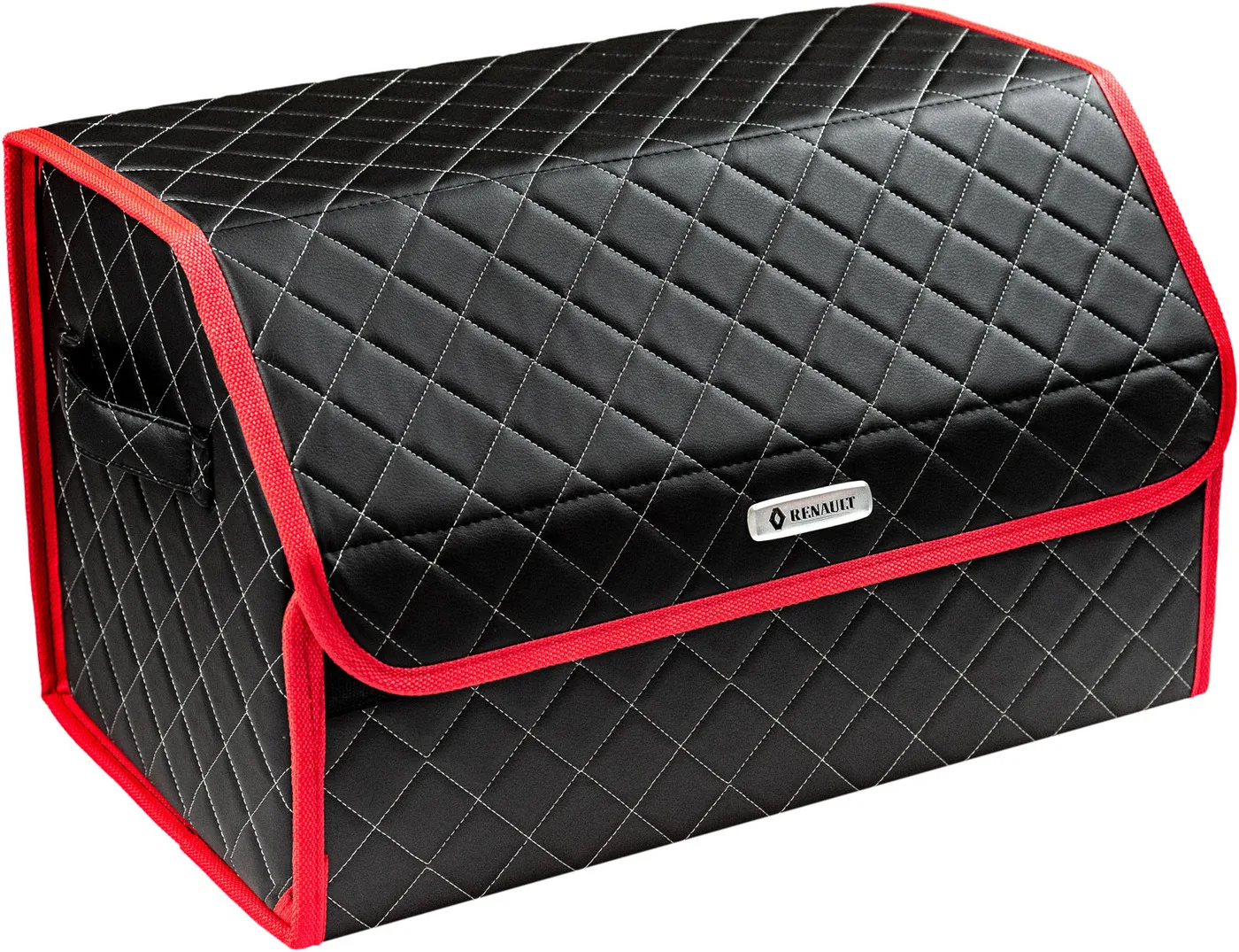 Special Offer Сумка-органайзер в багажник автомобиля из экокожи черная с серой нитью ViceCar (красный кант) с логотипом RENAULT Discount [NEW!!] Today!