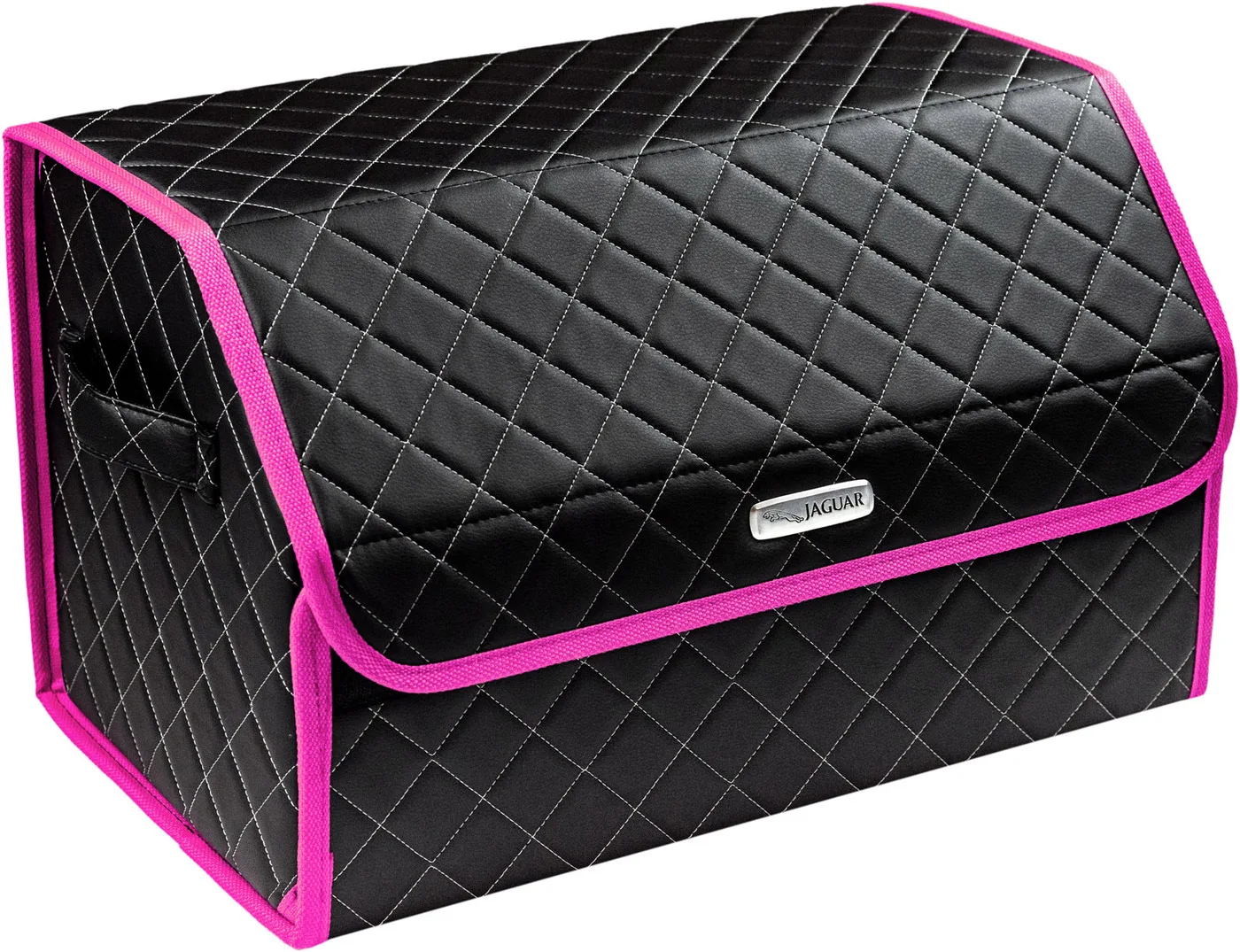 Special Offer Сумка-органайзер в багажник автомобиля из экокожи черная с серой нитью ViceCar (розовый кант) с логотипом JAGUAR Discount [NEW!!] Today!