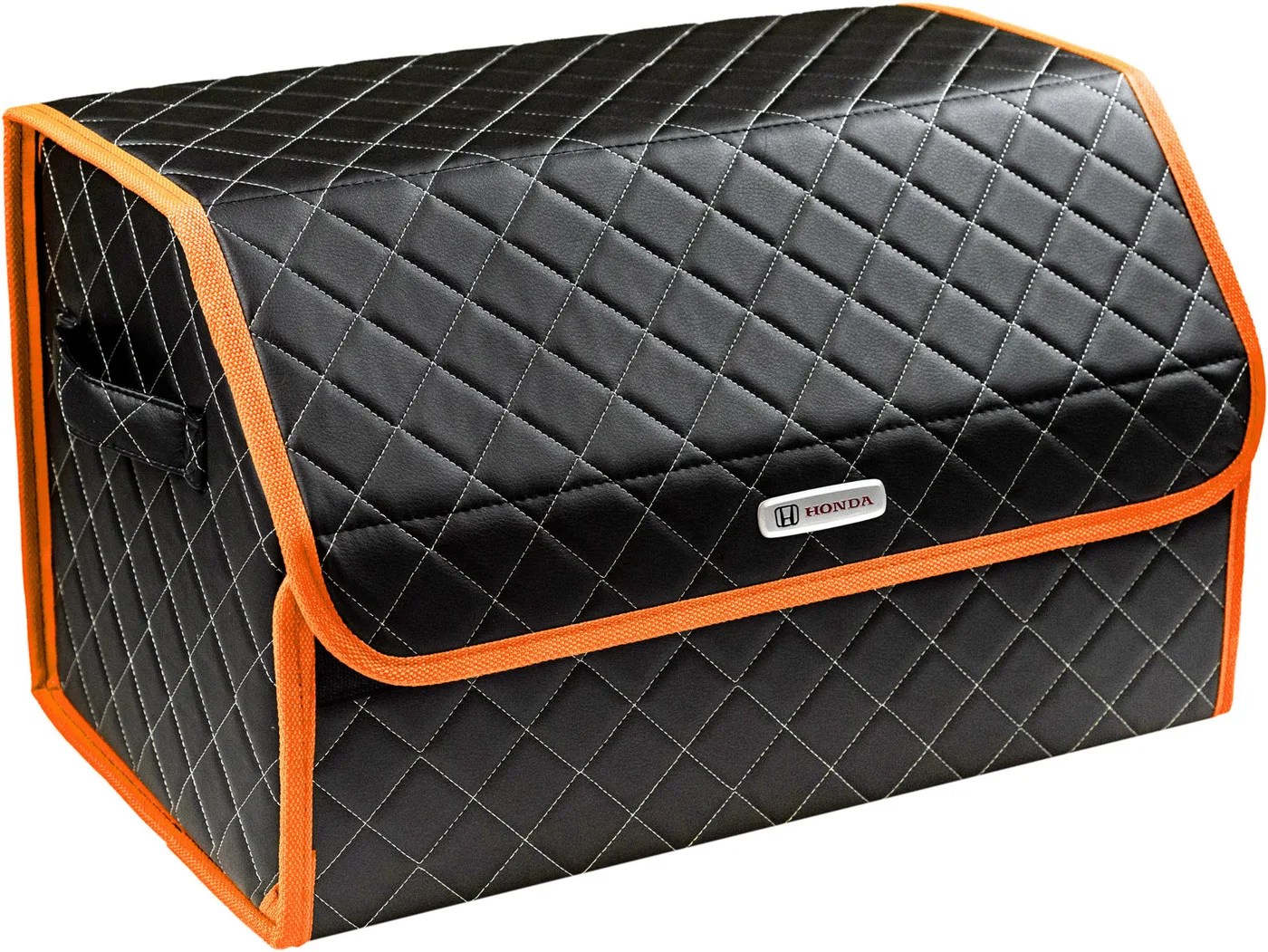 Special Offer Сумка-органайзер в багажник автомобиля из экокожи черная с серой нитью ViceCar (оранжевый кант) с логотипом HONDA Discount [NEW!!] Today!