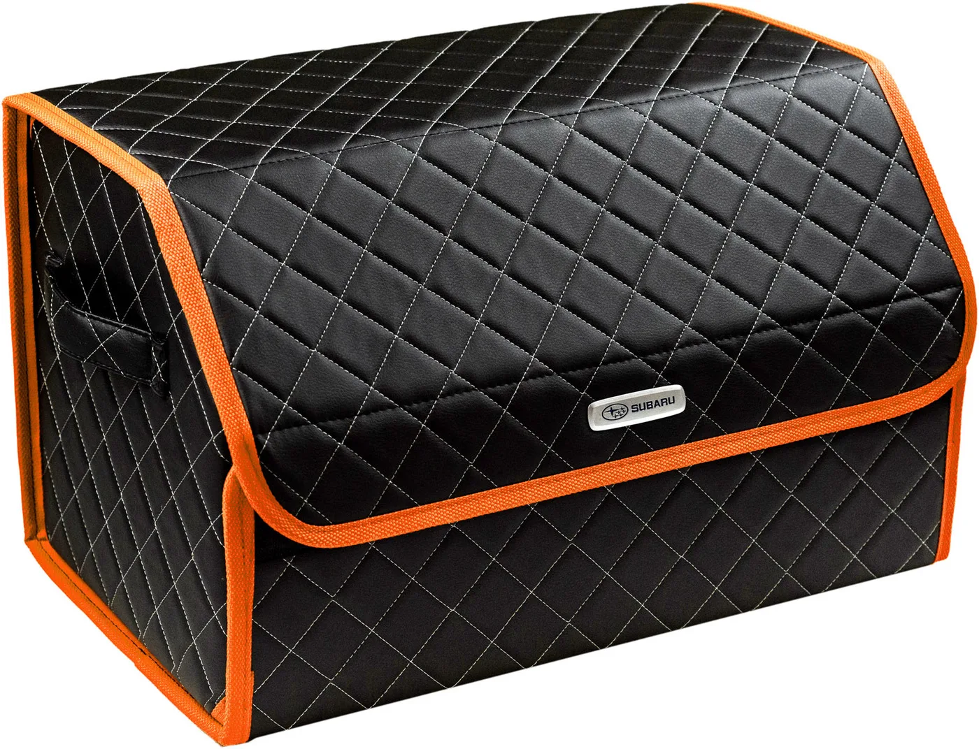 Special Offer Сумка-органайзер в багажник автомобиля из экокожи черная с серой нитью ViceCar (оранжевый кант) с логотипом SUBARU Discount [NEW!!] Today!