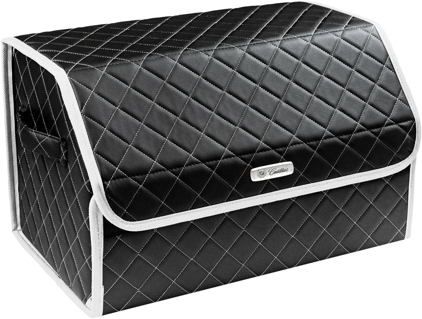 Special Offer Сумка-органайзер в багажник автомобиля из экокожи черная с серой нитью ViceCar (белый кант) с логотипом CADILLAC Discount [NEW!!] Today!
