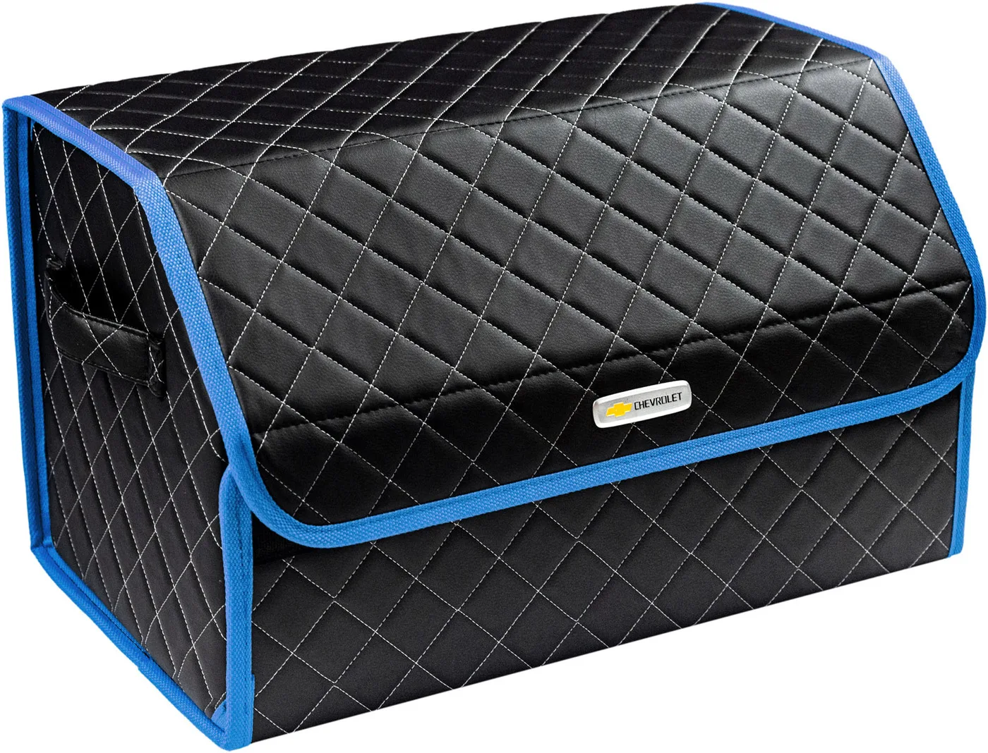 Special Offer Сумка-органайзер в багажник автомобиля из экокожи черная с серой нитью ViceCar (синий кант) с логотипом CHEVROLET Discount [NEW!!] Today!