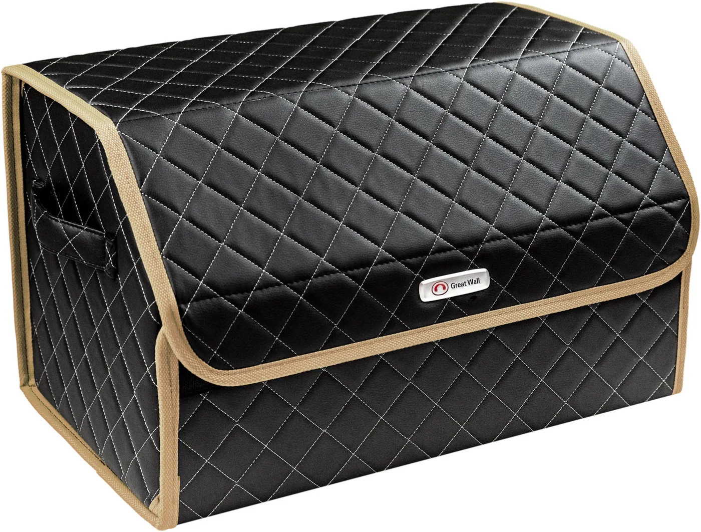 Special Offer Сумка-органайзер в багажник автомобиля из экокожи черная с серой нитью ViceCar (бежевый кант) с логотипом GREAT WALL Discount [NEW!!] Today!