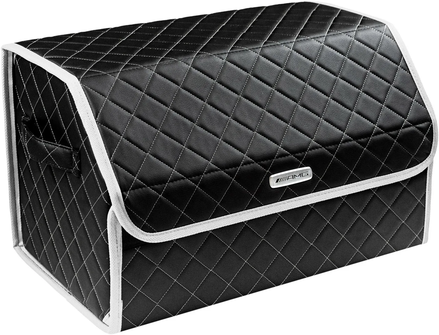 Special Offer Сумка-органайзер в багажник автомобиля из экокожи черная с серой нитью ViceCar (белый кант) с логотипом AMG Discount [NEW!!] Today!