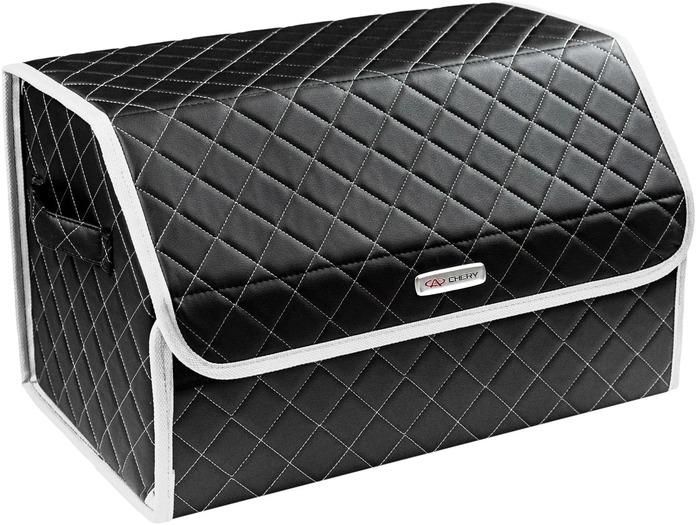 Special Offer Сумка-органайзер в багажник автомобиля из экокожи черная с серой нитью ViceCar (белый кант) с логотипом CHERY Discount [NEW!!] Today!