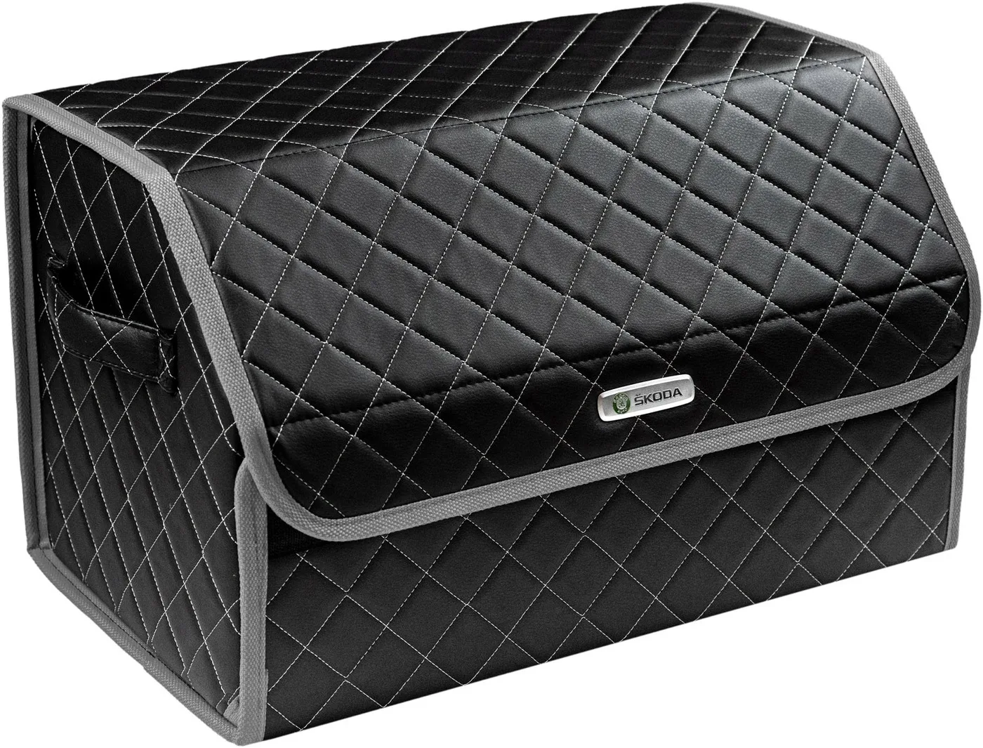 Special Offer Сумка-органайзер в багажник автомобиля из экокожи черная с серой нитью ViceCar (светло-серый кант) с логотипом SKODA Discount [NEW!!] Today!