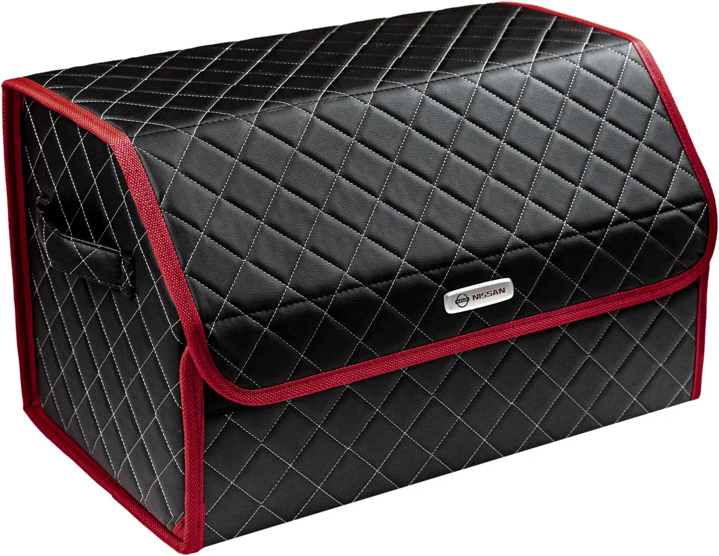 Special Offer Сумка-органайзер в багажник автомобиля из экокожи черная с серой нитью ViceCar (бордовый кант) с логотипом NISSAN Discount [NEW!!] Today!