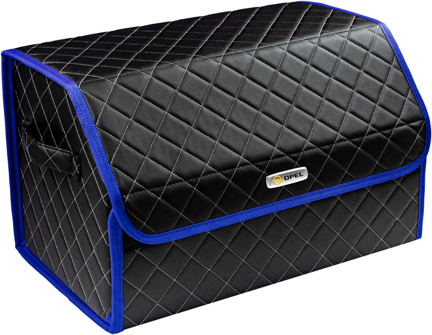 Special Offer Сумка-органайзер в багажник автомобиля из экокожи черная с серой нитью ViceCar (темно-синий кант) с логотипом OPEL Discount [NEW!!] Today!