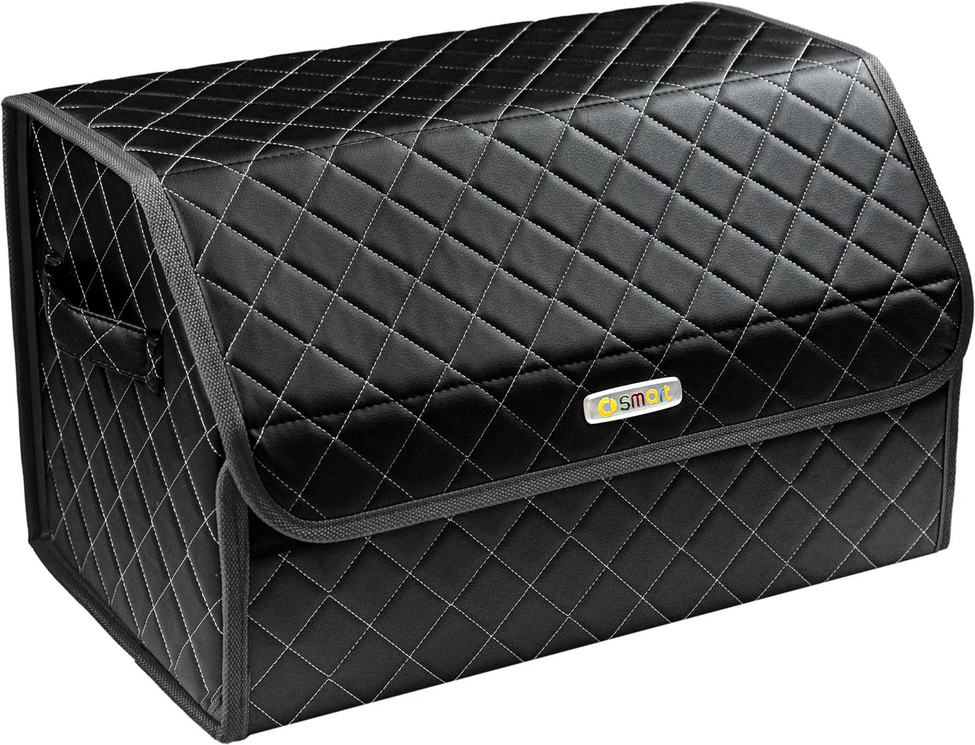Special Offer Сумка-органайзер в багажник автомобиля из экокожи черная с серой нитью ViceCar (темно-серый кант) с логотипом SMART Discount [NEW!!] Today!