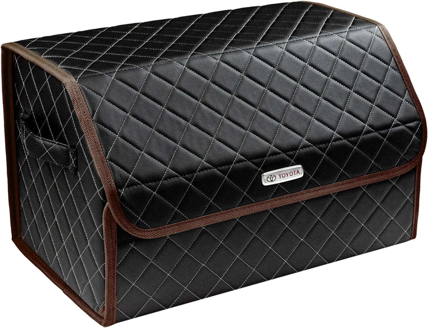 Special Offer Сумка-органайзер в багажник автомобиля из экокожи черная с серой нитью ViceCar (коричневый кант) с логотипом TOYOTA Discount [NEW!!] Today!