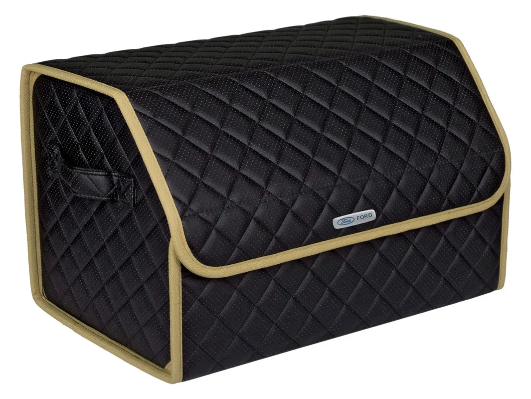 Special Offer Сумка-органайзер в багажник автомобиля из перфорированной экокожи черная с черной нитью ViceCar C логотипом FORD (бежевый кант) Discount [NEW!!] Today!