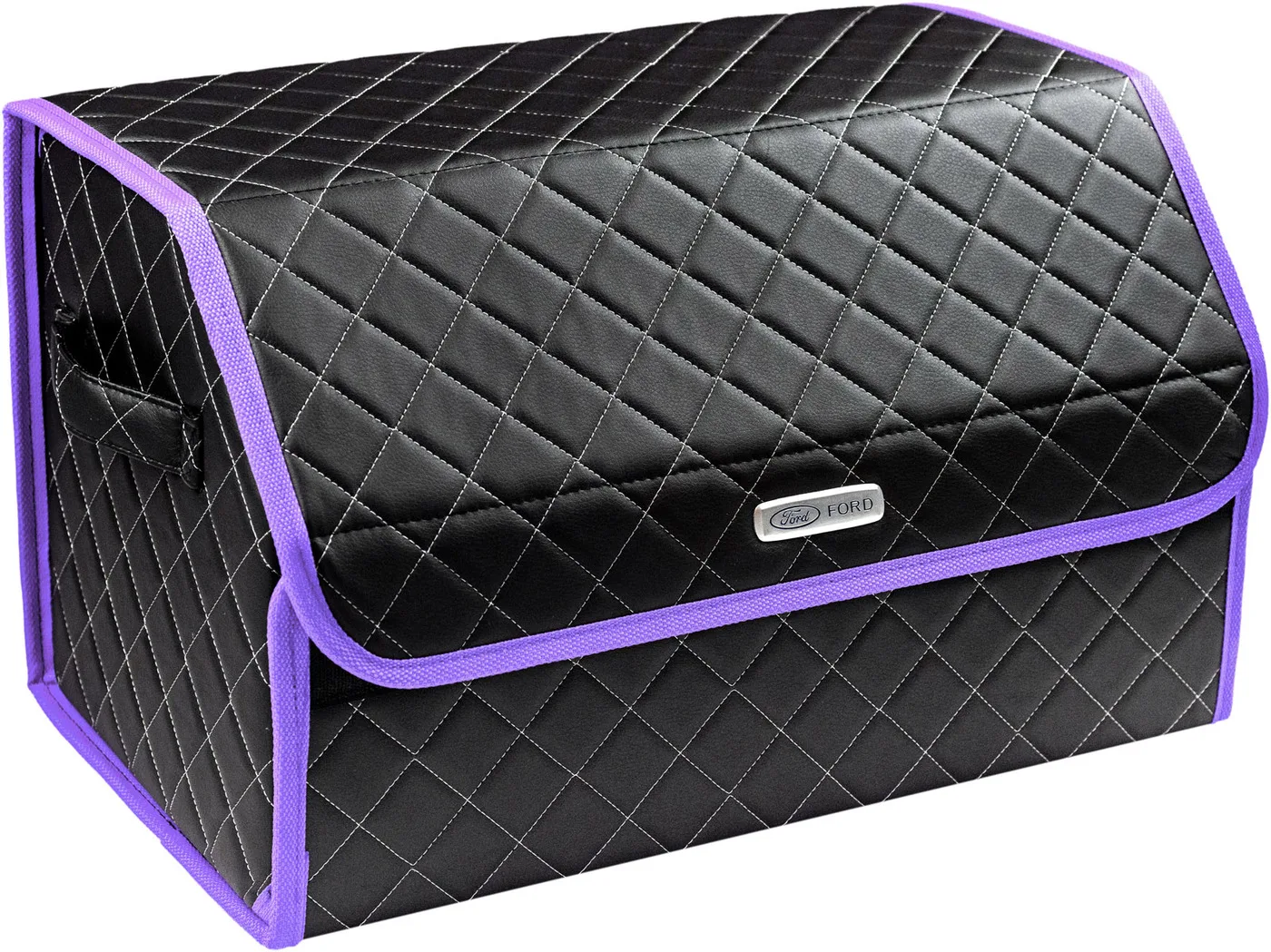 Special Offer Сумка-органайзер в багажник автомобиля из экокожи черная с серой нитью ViceCar (фиолетовый кант) с логотипом FORD Discount [NEW!!] Today!