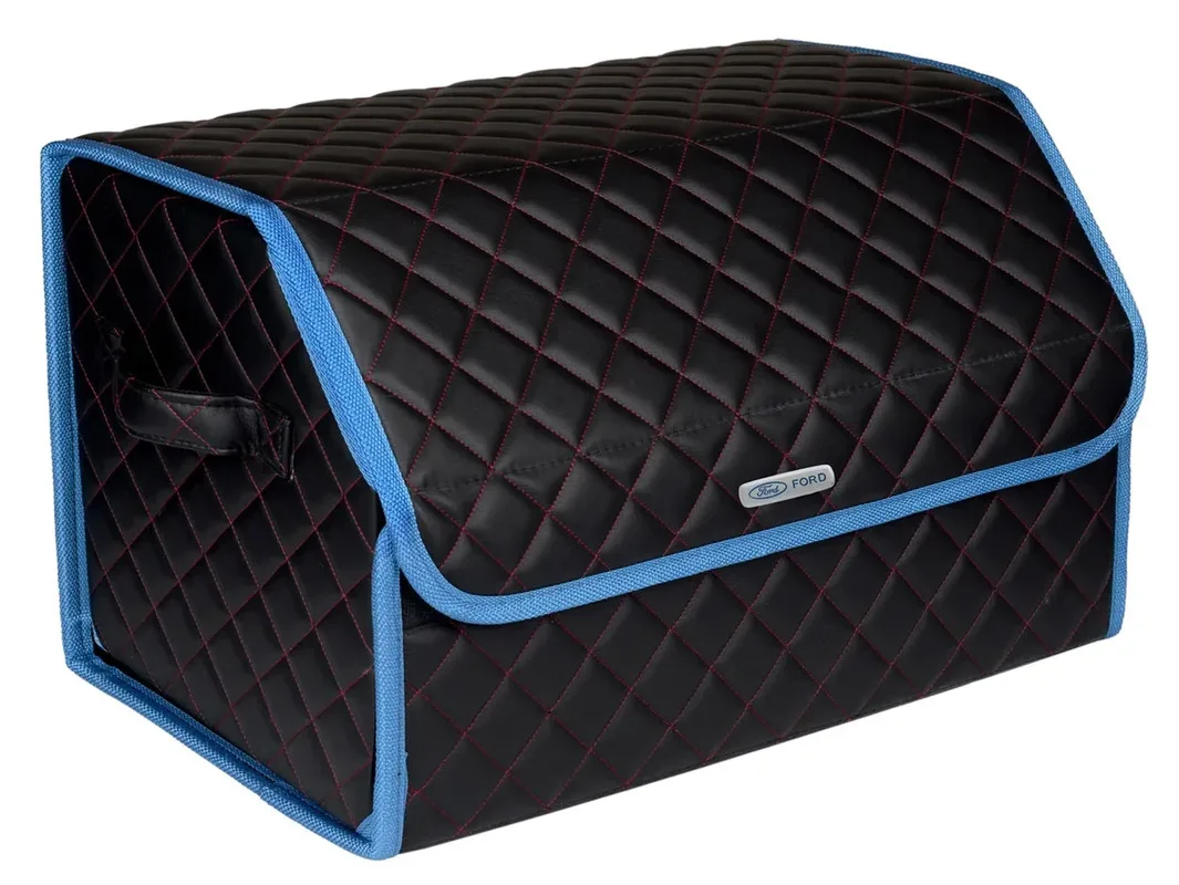 Special Offer Сумка-органайзер в багажник автомобиля из экокожи черная с красной нитью ViceCar с логотипом FORD (светло-синий кант) Discount [NEW!!] Today!