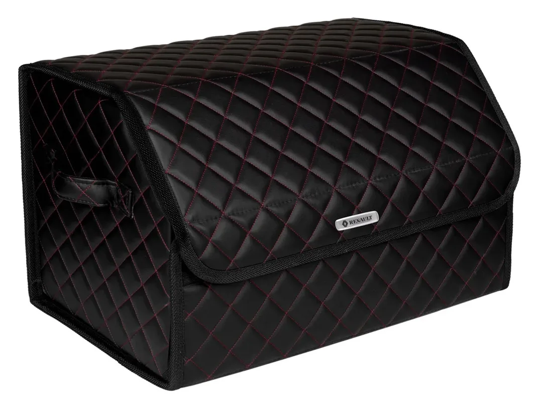 Special Offer Сумка-органайзер в багажник автомобиля из экокожи черная с красной нитью ViceCar с логотипом RENAULT (черный кант) Discount [NEW!!] Today!