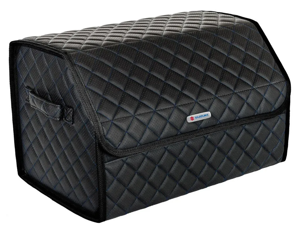 Special Offer Сумка-органайзер в багажник автомобиля из перфорированной экокожи черная с синей нитью ViceCar C логотипом SUZUKI (черный кант) Discount [NEW!!] Today!