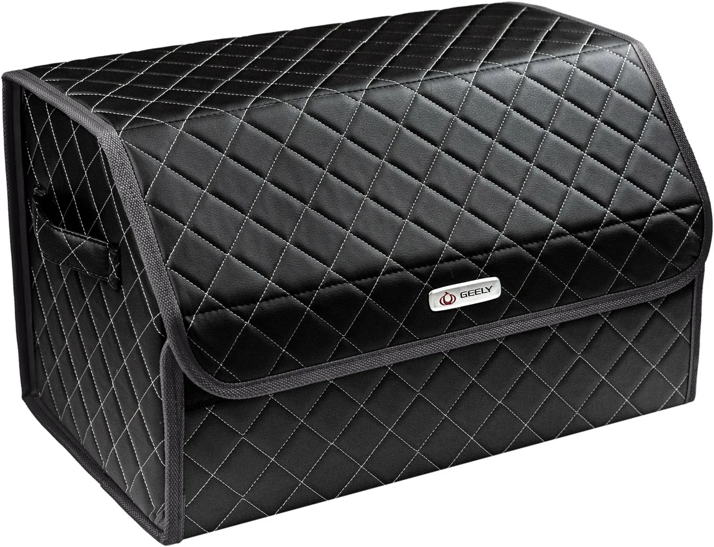 Special Offer Сумка-органайзер в багажник автомобиля из экокожи черная с серой нитью ViceCar (темно-серый кант) с логотипом GEELY Discount [NEW!!] Today!