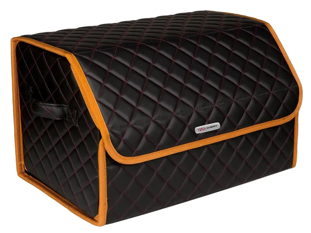 Special Offer Сумка-органайзер в багажник автомобиля из экокожи черная с красной нитью ViceCar с логотипом CHERY (оранжевый кант) Discount [NEW!!] Today!